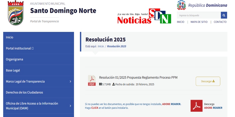 Falta de transparencia en el portal web del Ayuntamiento de Santo Domingo Norte