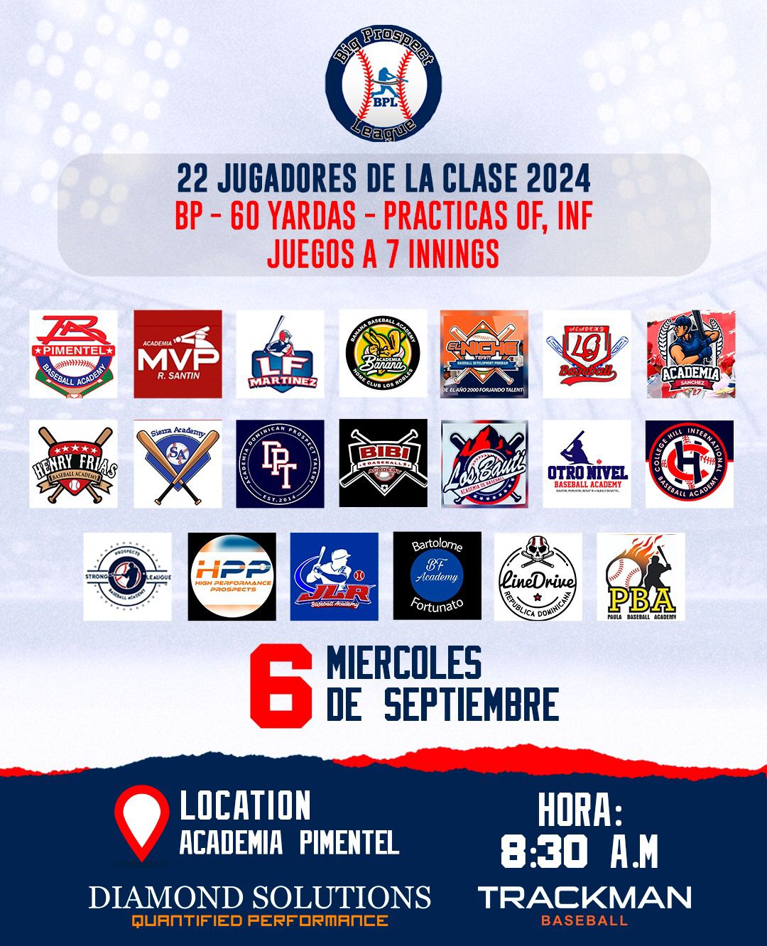 Para el miércoles 6 de septiembre la Big Prospect league estará realizando un Show Case con los jugadores clase 2024.