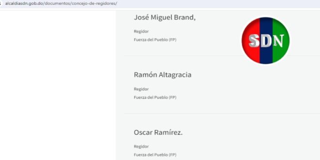 Santo Domingo Norte, RD. – En este medio hemos estado pendiente de que en el portal web del Ayuntamiento de Santo Domingo Norte (ASDN), se destaquen a los 17 regidores del municipio, tal y como corresponde, por tal razón, nos hicimos eco de que estos aún no habían sido colocados en el sitio que corresponde.