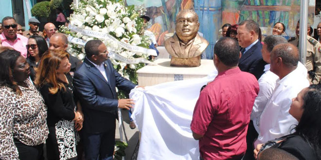 El busto, creado por el artista plástico Ezequiel Soto Montero fue colocado en la parte frontal del edificio que lleva el nombre del fenecido dirigente social y politico, fue develizado por el alcalde René Polanco en compañía del presidente del Concejo Regidores, Antolín Polanco, funcionarios municipales y todos los concejales de esa alcaldía.