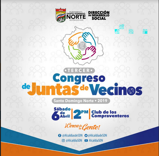 La Alcaldía de Santo Domingo Norte anunció la celebración el próximo sábado 6 de abril del tercer Congreso de Juntas de Vecinos, Asociaciones y Federaciones de este municipio, con el objetivo de fortalecer el desarrollo de las entidades comunitarias.
