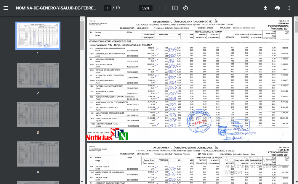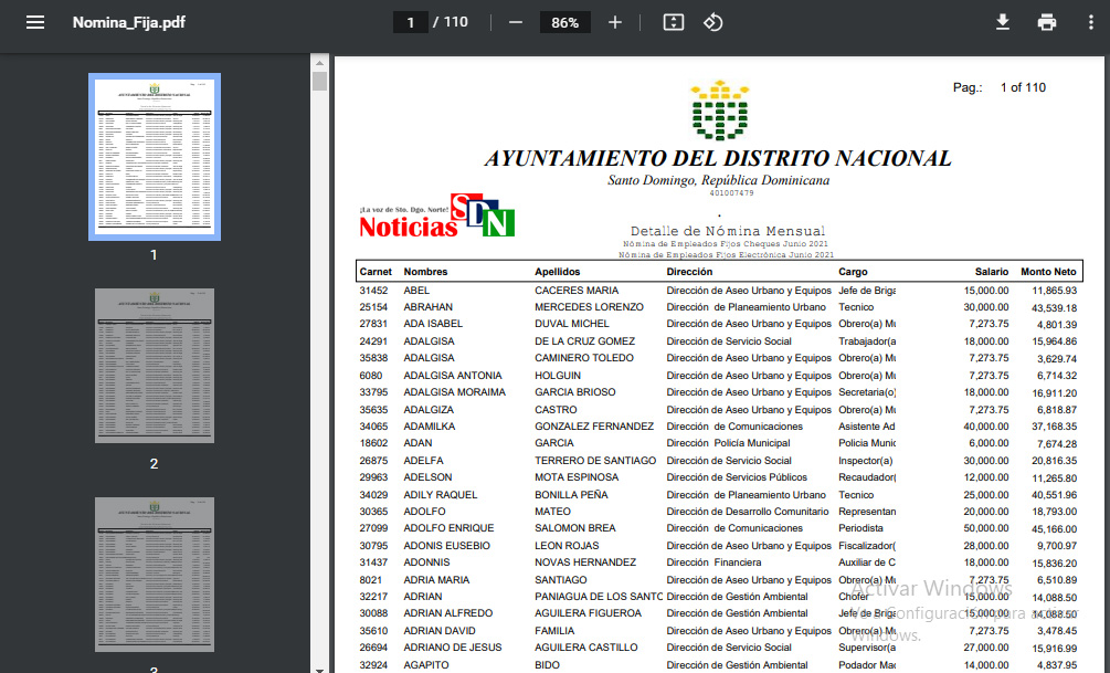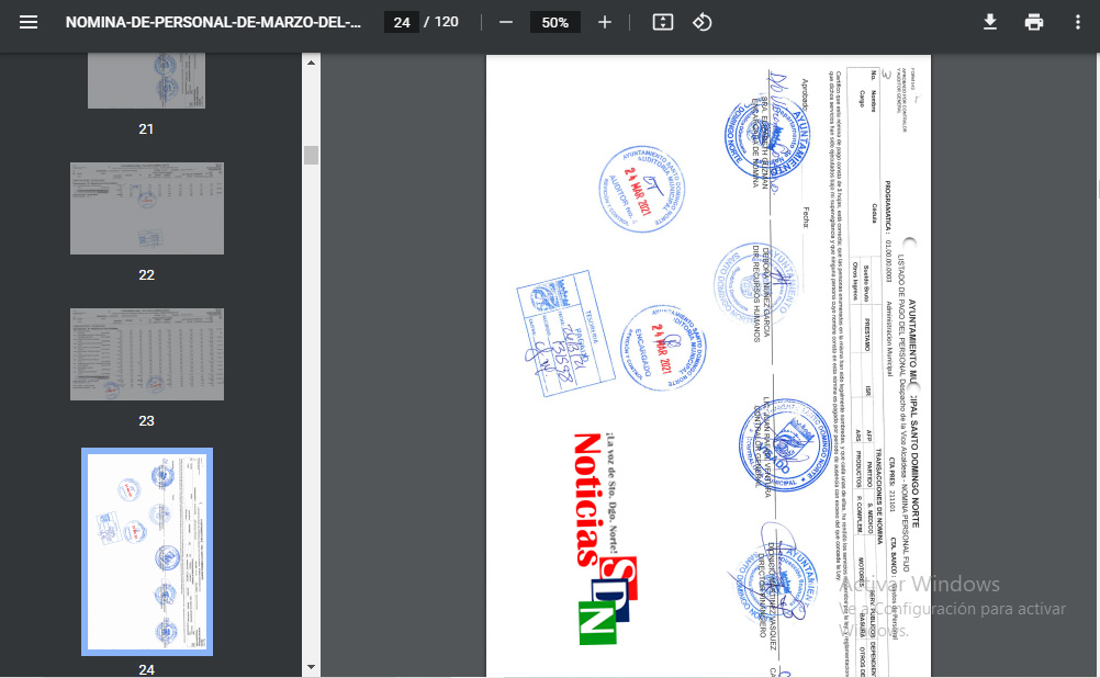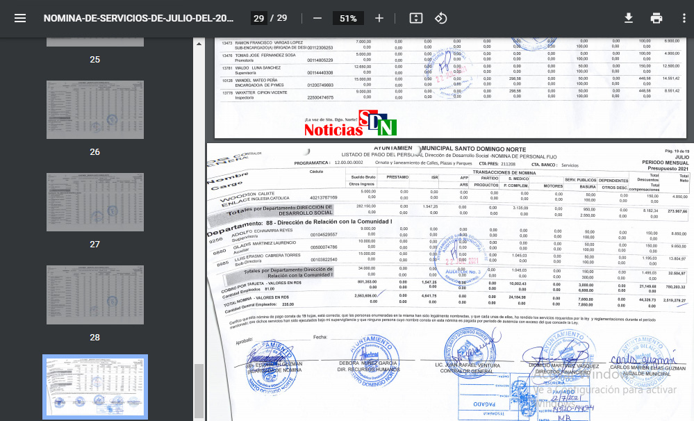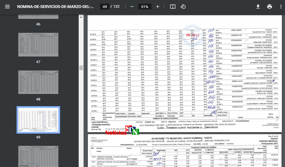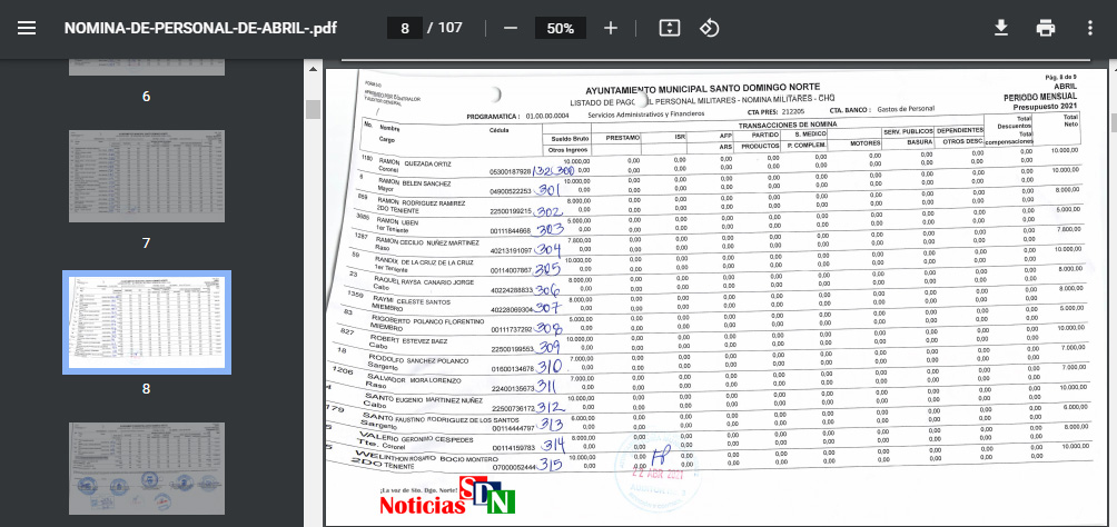 Santo Domingo Norte. – Un «arroz con mango» es lo que parecen los documentos de la nómina publicada en el portal web del Ayuntamiento de Santo Domingo Norte (ASDN), que por cierto, rumbo a septiembre, no han publicado los detalles correspondientes al mes de mayo.