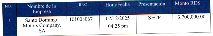 Aunque en el documento de compras y contrataciones del ASDN, aparece con un precio estimado de RD$ 3.4 millones de pesos, el precio de adjudicación resultó ser de RD$ 3.7 millones de pesos.