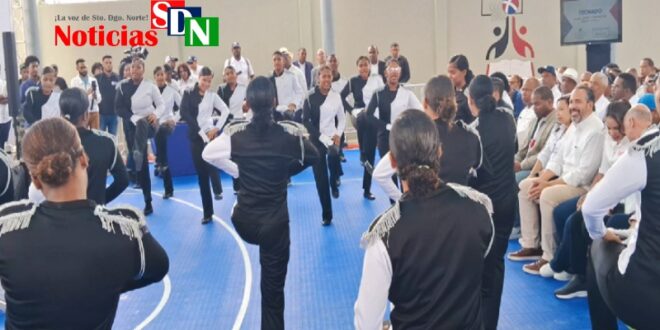 Sabana Perdida, SDN. – Decenas de estudiantes que conforman la Banda del centro educativo Emma Balaguer Vallejo, deleitaron con su coreografía a cientos de personas presentes en la inauguración del techado del Club Lotes y Servicios, de parte del Instituto Nacional de Educación Física (INEFI).