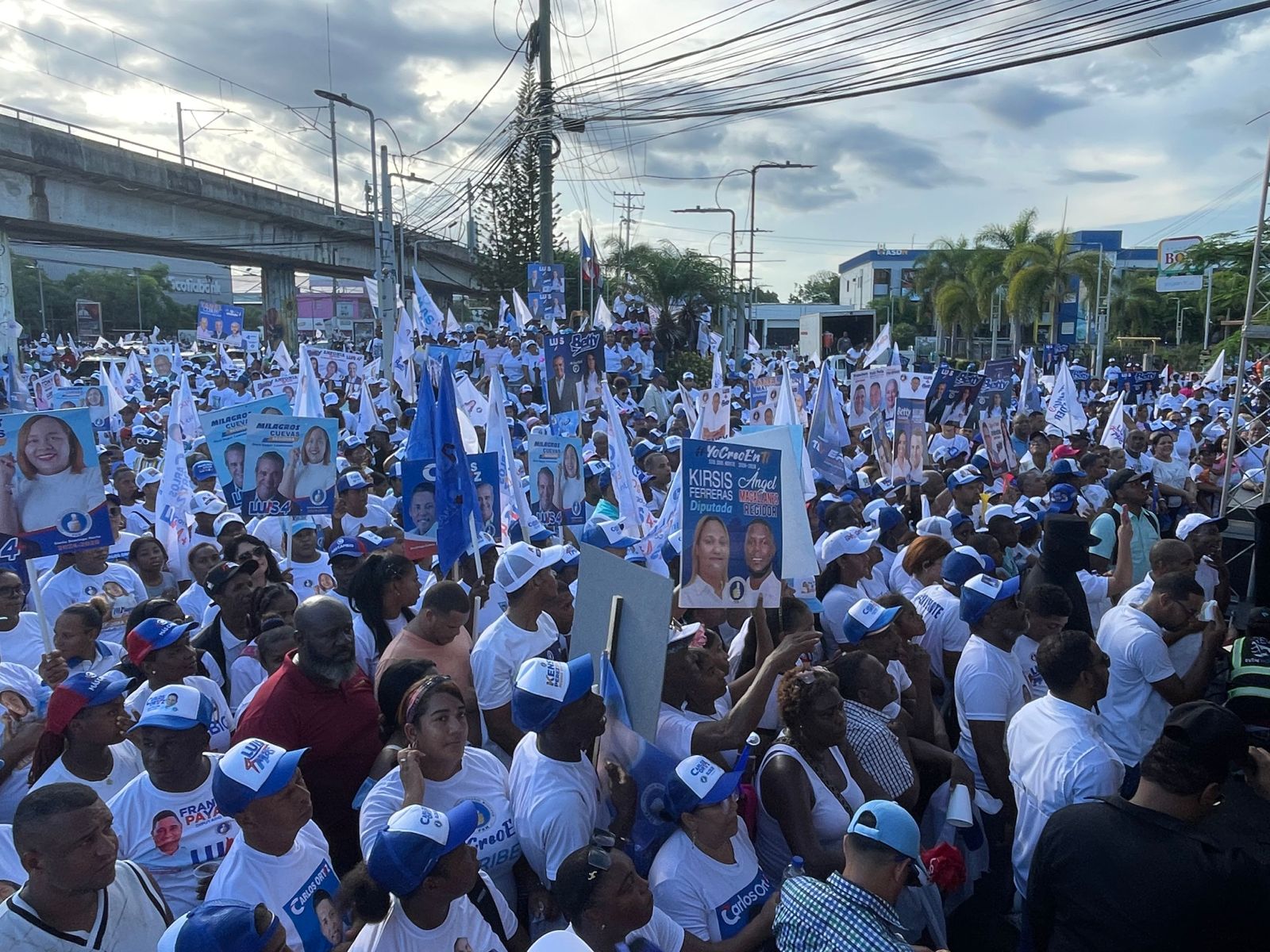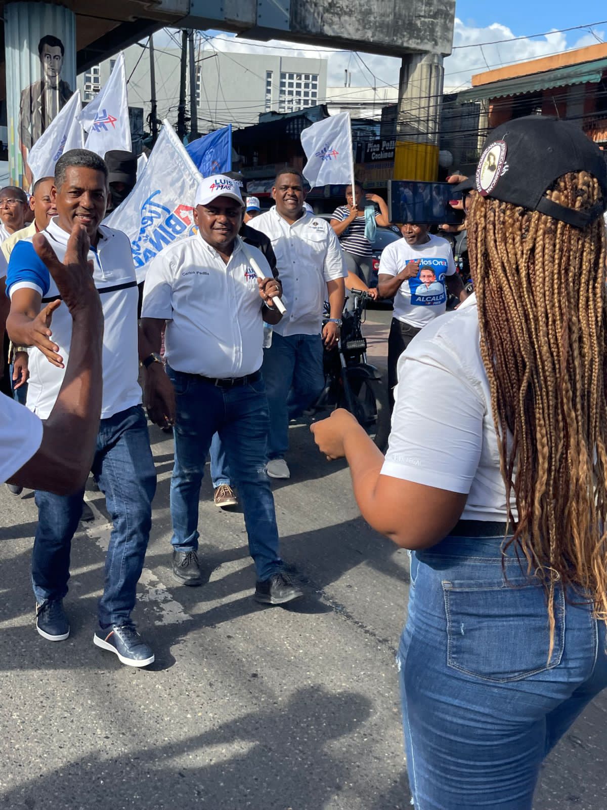 La marcha caravana en favor a la postulación inició en la intersección formada por la avenida Hermanas Mirabal y Charles de Gaulle, convirtiendo estas vías en un mar humano y recorriendo todo el trayecto de la Hermanas Mirabal hasta llegar al ayuntamiento.