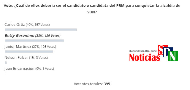 Aunque fue poca la participación de los perremeístas, según los resultados del sondeo realizado por Noticias SDN, los que van a «guayar la yuca» en busca de ser el candidato o candidata del PRM para las elecciones del 2024 en busca de la alcaldía, serán, Carlos Ortiz, Betty Gerónimo y Junior Martínez.