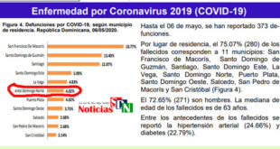 Por Jarlen Espinosa. Santo Domingo Norte. – El boletín 49 del Ministerio de Salud Pública (MSP), ha revelado como este municipio ha pasado de estar en la séptima posición a la sexta, en materia de tasa de mortalidad a causa del coronavirus (COVID-19) en el país. Ayer en el informa …