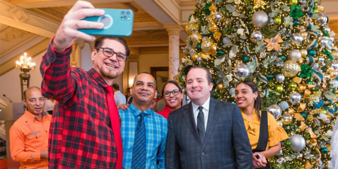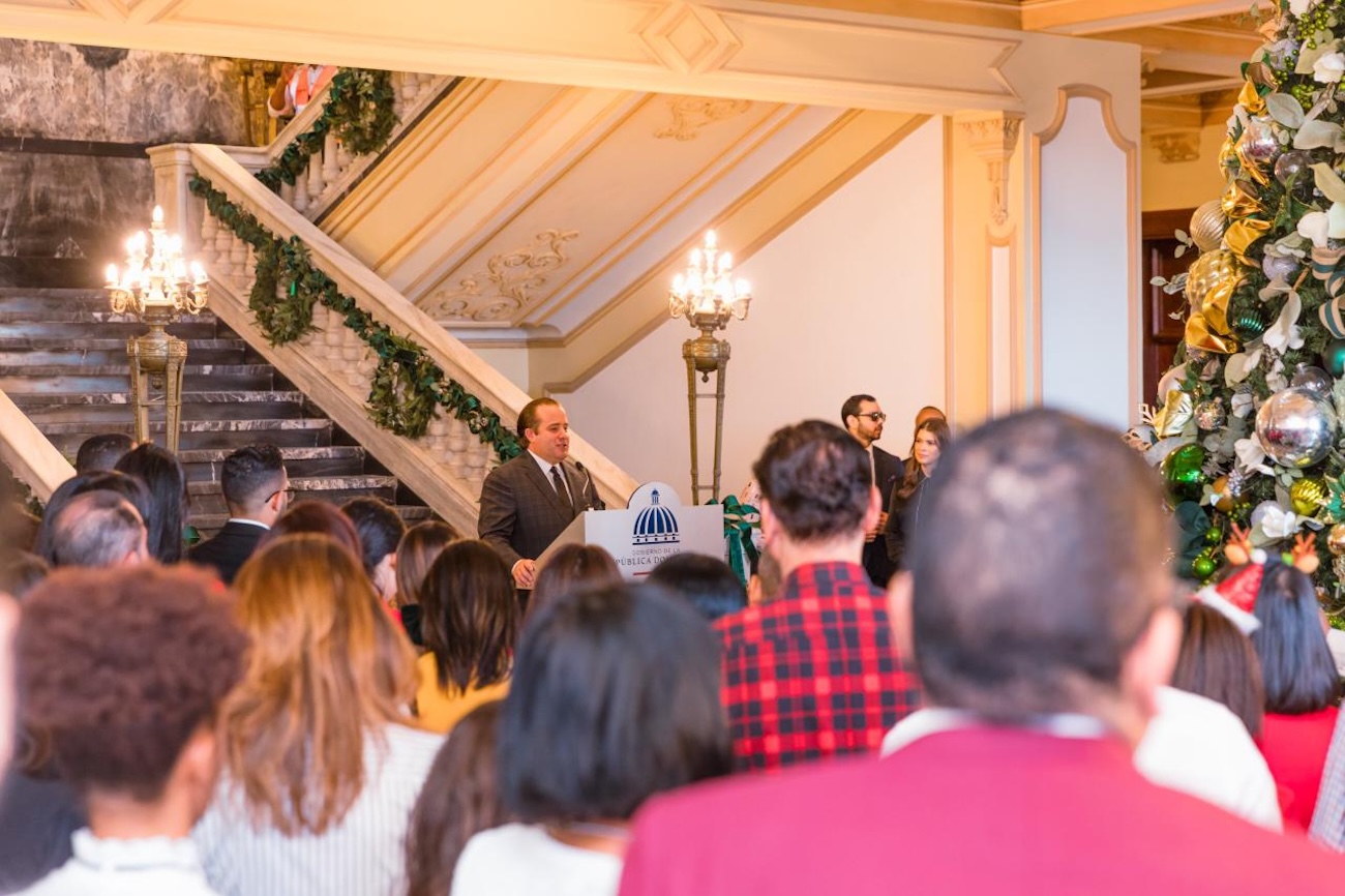 Santo Domingo.- Con un sencillo acto que contó con la participación de los colaboradores de las diferentes áreas del Ministerio Administrativo de la Presidencia, su titular José Ignacio Paliza, dejó encendido el árbol navideño y abrió el acceso a los jardines del Palacio Nacional.
