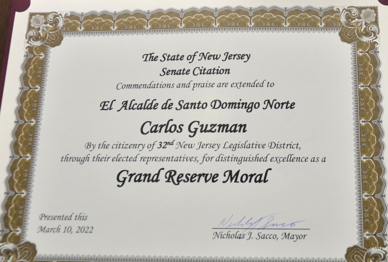 Santo Domingo, RD. – El Congreso de los Estados Unidos, así como el estado de New Jersey, reconocieron por separado la gestión de Carlos Guzmán al frente de la Alcaldía de Santo Domingo Norte (ASDN).