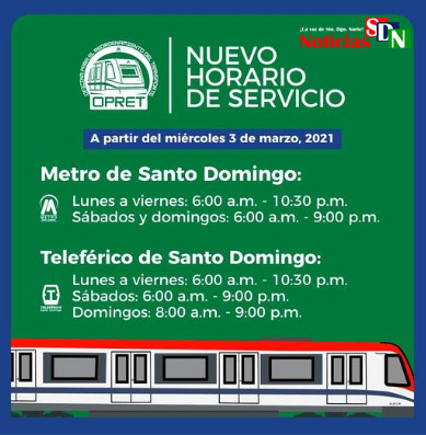 Santo Domingo Norte. – Luego del decreto 133-21 lanzado por el Poder Ejecutivo, las empresas y diferentes entidades dedicadas a diversos servicios han modificado sus horarios acorde a los ajustes requeridos, lo mismo ha hecho la Oficina Para el Reordenamiento del Transporte (OPRET) con el Metro y Teleférico de Santo Domingo.