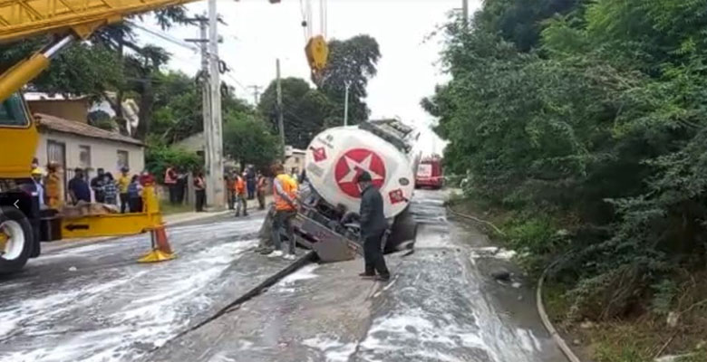 La Unidad de Búsqueda y Rescate de la Defensa Civil de Santiago, se trasladó hasta la comunidad de La Herradura, para dar asistencia al conductor de un camión tanquero que cayó dentro de un hoyo, derramando combustible; no se reportan víctimas.