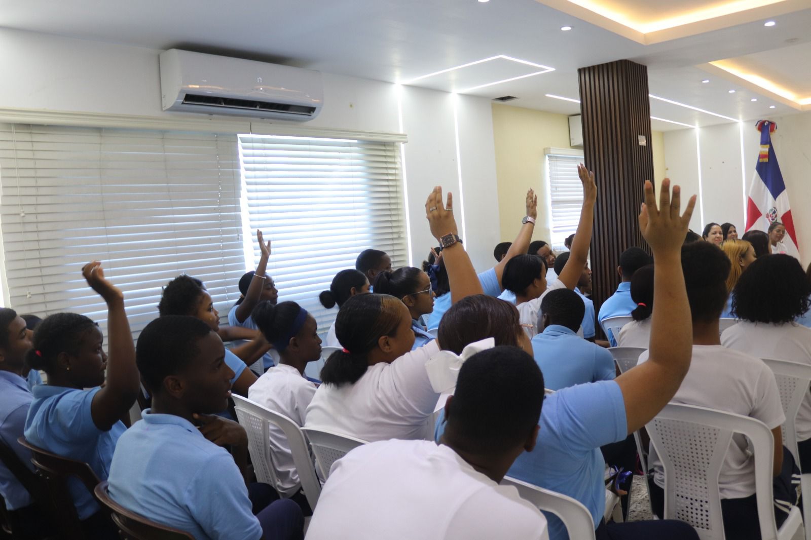 En el marco de la charla los estudiantes compartieron inquietudes con el legislador sobre la realidad medio ambiental del municipio Santo Domingo Norte y el país.