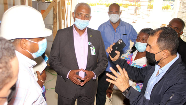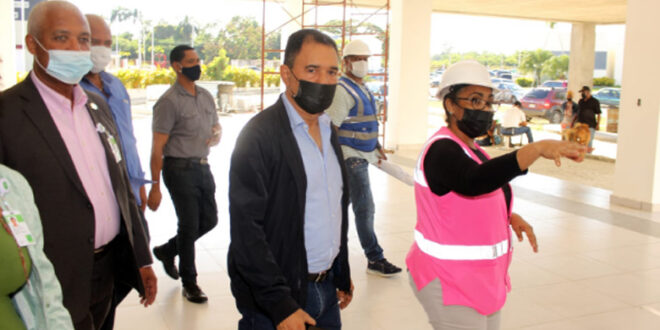 El doctor Duran durante su recorrido por el hospital, estuvo acompañado por dirigentes municipales y líderes comunitarios de Santo Domingo Norte, quienes pudieron comprobar el avance de la obra, la cual está pautada para ser terminada a final de año.