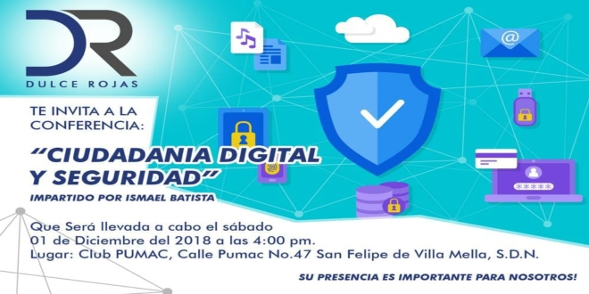 Santo Domingo Norte. – Dulce Rojas, regidora en SDN, por el Partido de la Liberación Dominicana (PLD), invita para este sábado 01 de diciembre, a los ciudadanos del municipio a la conferencia «Ciudadanía Digital y seguridad«, con el propósito de enseñar a los jóvenes y adultos sobre seguridad y privacidad en la web.