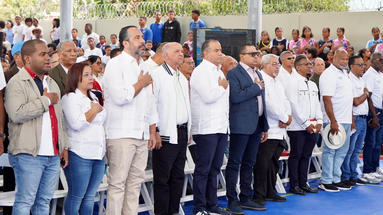 Santo Domingo Norte, R.D.– Continuando con su plan de fortalecimiento de la educación física y el deporte escolar, el Ministerio de Educación (MINERD) y el Instituto Nacional de Educación Física (INEFI) inauguraron este viernes un moderno polideportivo techado en el Club Lotes y Servicios y el Centro Educativo Emma Balaguer de Vallejo, en el sector Sabana Perdida.