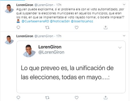 Santo Domingo Norte. – El regidor y candidato al cargo del Partido Revolucionario Dominicano (PRD) en Santo Domingo Norte, Loren Girón Villa, cree que luego de la suspensión de las elecciones municipales tras los fallos técnicos presentados con el voto automatizado.