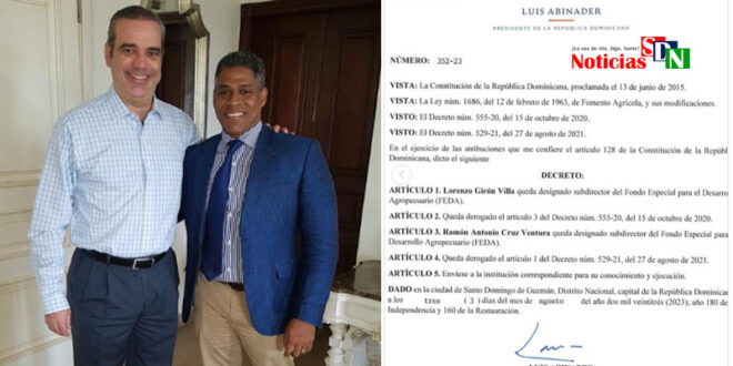 Santo Domingo Norte. – El dirigente político del Partido Revolucionario Moderno (PRM) y exregidor por varios períodos de este municipio, Loren Girón Villa, ha hecho público su agradecimiento al presidente Luis Abinader, por la designación que este le ha encomendado mediante el decreto 352-23.