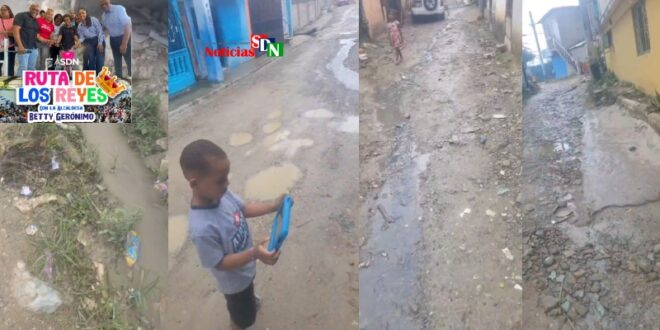 Santo Domingo Norte, RD. – Mientras que en las redes del Ayuntamiento de Santo Domingo Norte (ASDN) andan publicando fotos de la entrega de juguetes, los niños del barrio Moscú en Sabana Perdida viven entre el lodo esperando que la alcaldesa Betty Gerónimo y su equipo se conduelan y en vez de juego le lleve el arreglo de sus calles.