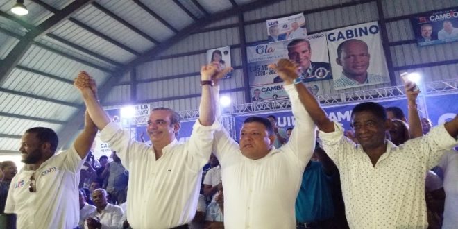 Santo Domingo Norte.- Luis Abinader proclamó al regidor de Santo Domingo Norte, por el Partido Revolucionario Moderno (PRM), Miguel “EL Gringo” Saviñón como el precandidato de su corriente a la alcaldía del Distrito Municipal de la Victoria, en un multitudinario acto celebrado en el polideportivo de Sabana Perdida.