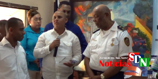 Eduard Matos miembro del MASD, fue quien realizó la entrega del reconocimiento, en el salón de aptos del Cuerpo de Bomberos el pasado sábado, en donde se llevó a cabo una charla sobre la vida del Dr. José Francisco Peña Gómez, a cargo de su hija Abril Peña.