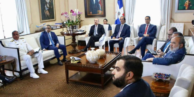 La reunión se realizó en el salón privado del despacho del presidente Medina y contó con la participación de Ramón Pepín, ministro de Obras Públicas; Juan Ariel Jiménez, ministro de Economía, Planificación y Desarrollo, y Emilio Recio Segura, jefe de la Armada Dominicana.