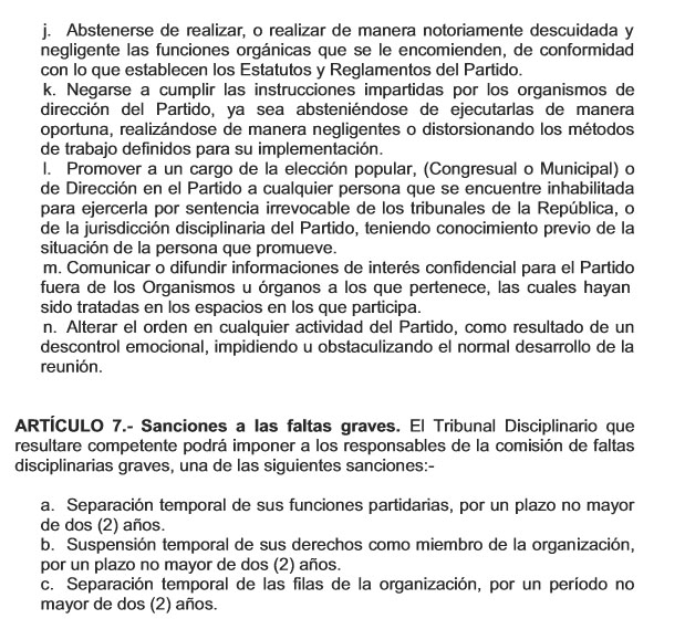 A continuación les dejaremos con algunas faltas graves establecidas el reglamento de Disciplina y Ética del PLD y sus sanciones.