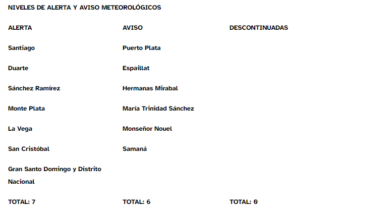 En la costa Atlántica, desde Cabo Engaño (La Altagracia) hasta Monte Cristi, se recomienda a los operadores de frágiles y pequeñas embarcaciones, A navegar cerca del perímetro costero sin aventurarse mar adentro, debido a viento y olas anormales.
