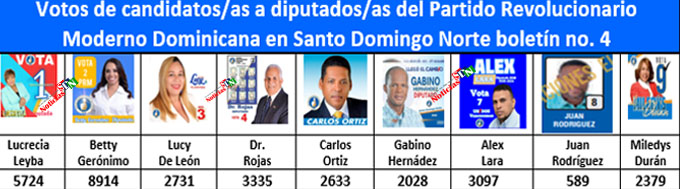 Santo Domingo Norte. – Por el momento siguen faltando 328 colegios electorales por computar de los 641 que tiene el municipio, pero, se ha empezado a notar el avance en el conteo de los votos en el nivel de los diputados/as de parte de la Junta Central Electoral (JCE) de Santo Domingo Norte, en donde los candidatos/as del Partido Revolucionario Moderno (PRM) llevan buen ritmo.