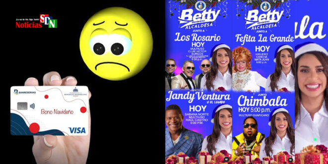 Santo Domingo Norte. – Desde el gobierno se promocionan los famosos «Bonos Navideños» y en el caso de este municipio, tengo entendido que fueron entregados un total de 7 bonos por juntas de vecinos, los cuales son muy pocos, se podría pensar que el dinero no alcanza, pero, ver que se han contratados artistas y orquestas para promocionar a la aspirante a alcaldesa por el Partido Revolucionario Moderno (PRM), Betty Gerónimo, deja claro que no es falta de dinero, sino, la utilización que se le está dando.