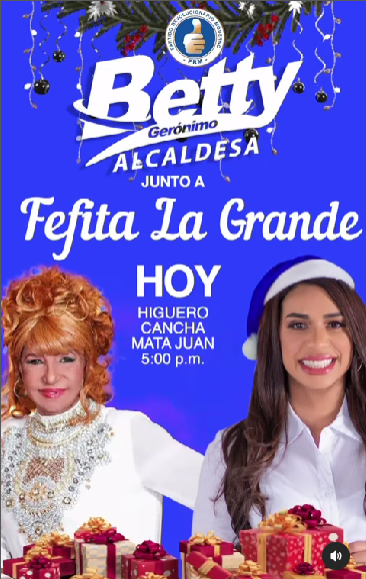 «Fiestas Navideñas» lleva por nombre las actividades con las que desde el gobierno, se ha estado promocionando su candidata a alcaldesa, la diputada Betty Gerónimo.