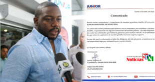 Por Jarlen Espinosa. Santo Domingo Norte. – El aspirante a la alcaldía de este municipio por el Partido Revolucionario Moderno (PRM), Junior Martínez, ha emitido un comunicado con el que deja suspendida todas sus actividades políticas para este sábado, para respetar el espacio de su compañera de partido y aspirante …