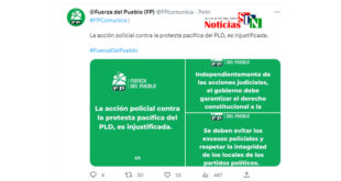 Director- NoticiasSDN.com; Santo Domingo Norte. La Fuerza del Pueblo (FP) acaba de pronunciarse a través de su cuenta de Twitter, condenando las acciones de parte de agentes de la Policía Nacional, en contra de los militantes del Partido de la Liberación Dominicana (PLD). Varios vídeos han estado circulando en las …