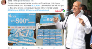 Por Jarlen Espinosa. Santo Domingo Norte. – El presidente del Partido Revolucionario Moderno (PRM) en este municipio y actual director de los Centros Tecnológicos Comunitarios (CTC), Isidro Torres, ha colgado en su cuenta de twitter imágenes de algunos bonos navideños «vencidos», que se habrían encontrado en una de las oficinas …