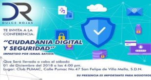 Fuente externa. Santo Domingo Norte. – Dulce Rojas, regidora en SDN, por el Partido de la Liberación Dominicana (PLD), invita para este sábado 01 de diciembre, a los ciudadanos del municipio a la conferencia «Ciudadanía Digital y seguridad«, con el propósito de enseñar a los jóvenes y adultos sobre seguridad …
