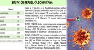 Por Jarlen Espinosa. Santo Domingo. – El coronavirus (COVID-19) sigue aumentando su número de contagiados y fallecidos, la República Dominicana no es la excepción, tal como se muestra en el boletín número 30 emitido por el Ministerio de Salud Pública en el cual se registra un total de 4,335 infectados …