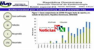 Por Jarlen Espinosa. Santo Domingo. – El coronavirus (COVID-19) sigue arreciando en la República Dominicana y cada día son más los infectados, el reciente informe del Ministerio de Salud Pública registra un aumento en los contagiados y los fallecidos. De 719 casos han aumentado a 859, es decir, 140 nuevos …