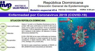 Por Jarlen Espinosa. Santo Domingo. – Ya suman 16 las personas que han rebasado el coronavirus (COVID-19) en la República Dominicana, según informa el Ministerio de Salud Pública en el boletín número 14. En tanto que la cantidad de contagiados en este registro, presenta un total de 1380 casos confirmados. …