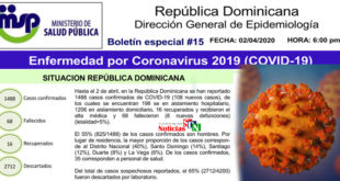 Por Jarlen Espinosa. Santo Domingo. – La pandemia del coronavirus (COVID-19) sigue aumentando la cantidad de infectados y muertes en la República Dominicana, según registra el Ministerio de Salud Pública en su boletín número 15. Unas 2712 personas han sido descartadas tras dar negativo al COVID-19, sin embargo, ya suman …