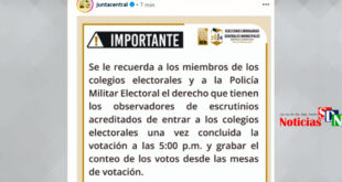Por Jarlen Espinosa Santo Domingo Norte. – La Junta Central Electoral (JCE) le ha recordado a los miembros de los Colegios Electorales y a la Policía Militar Electoral, que los Observadores de Escrutinios que estén acreditados, pueden ingresar a los colegios electorales una vez culminado el horario hábil para votar, …