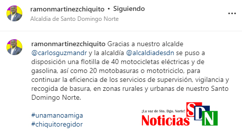 En las otras fotos subidas en la cuenta de Ramoncito, hacen referencia a las nuevas motocicletas adquiridas por la alcaldía por un monto de RD$ RD$10,399,500.00, las cuales se utilizarán para la recogida de los desechos sólidos algunas, y otras en labores propias de la alcaldía.