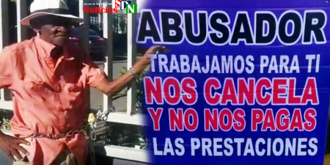 Santo Domingo Norte. – El título cita lo escrito en una de las pancartas de tenían dos señores que se encadenaron en los barrotes del Ayuntamiento de Santo Domingo Norte (ASDN), con la esperanza de que el alcalde Carlos Guzmán les pague sus prestaciones.