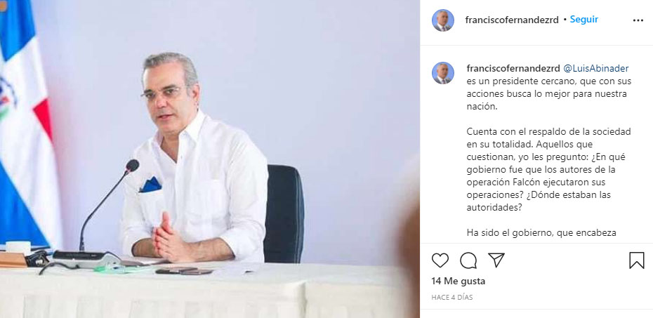 Hace unos pocos días se sigue viendo a Francisco Fernández manejar con diplomacia el asunto, de echo, ha estado defendiendo incluso, la gestión del presidente Abinader.